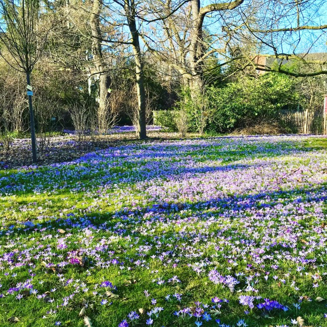 die Gärten erwarten den Frühling, den Fröhling, der dort spaziert